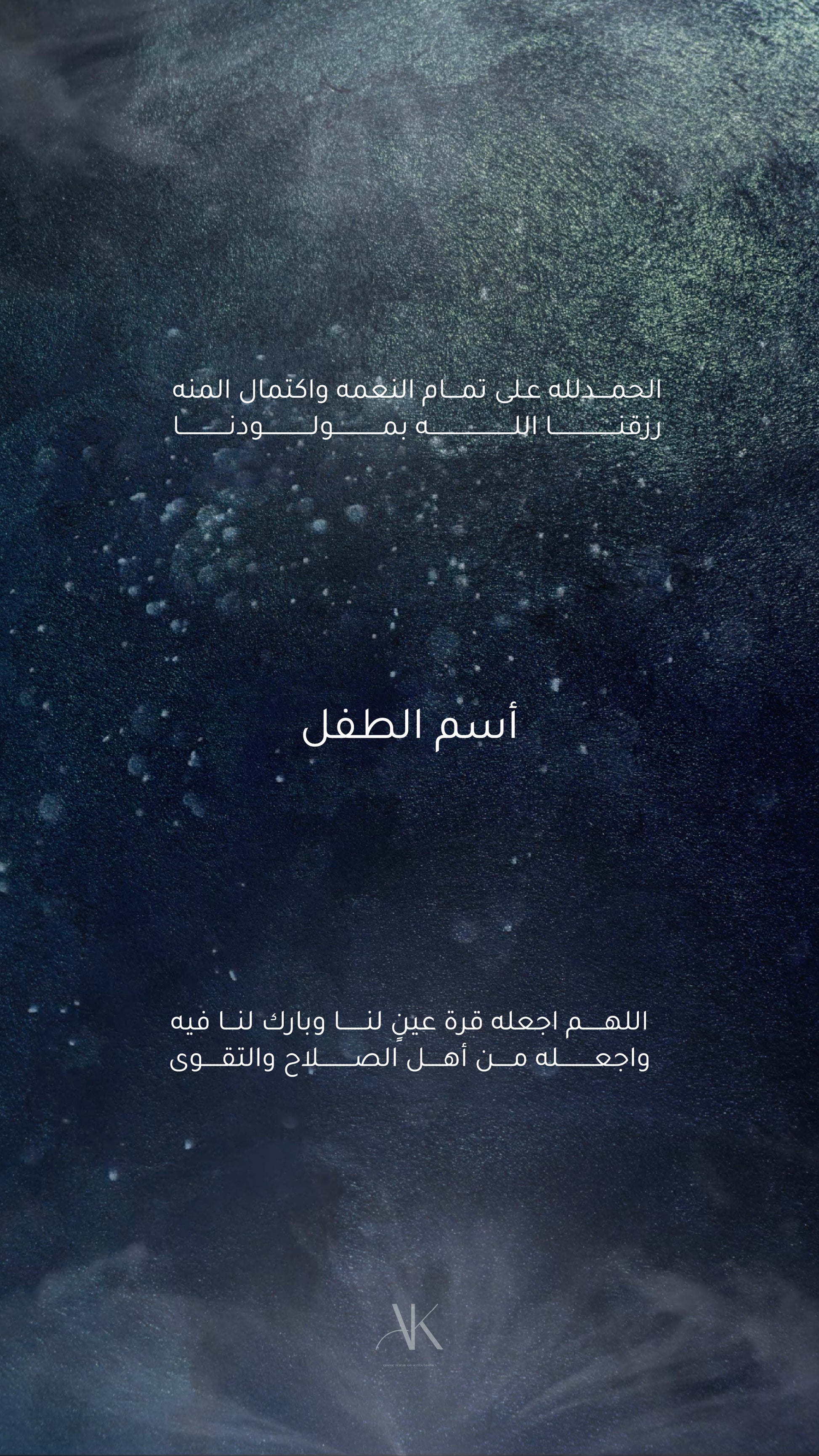تصميم إعلان مولود بألوان المحيط الهادئة. يشمل بطاقة إلكترونية وفيديو متحرك باسم المولود مع الشعار الخاص بكم ، سنتواصل معك عبر واتساب للتخصيص. مدة التنفيذ ١–٣ أيام